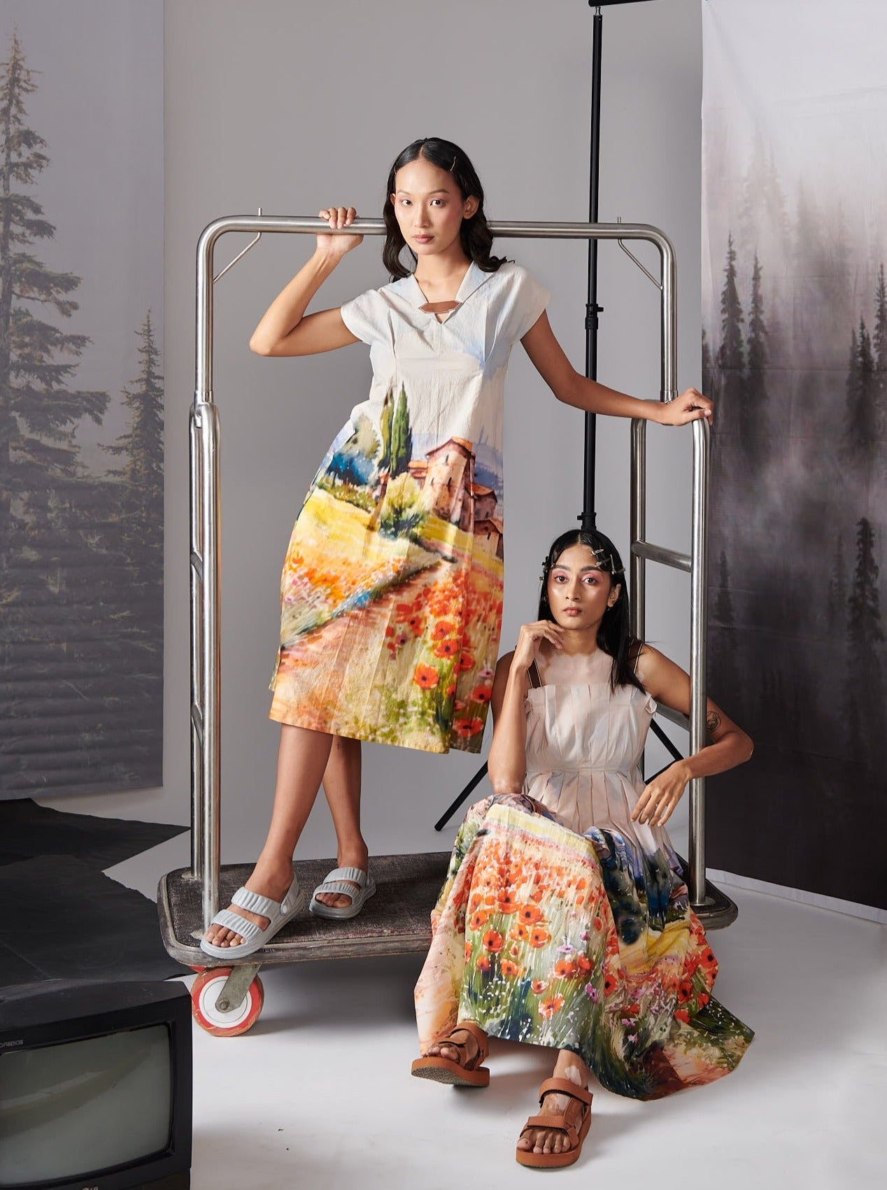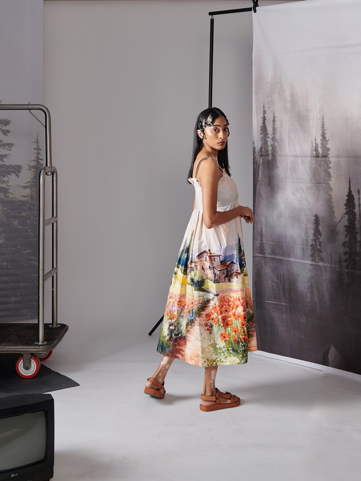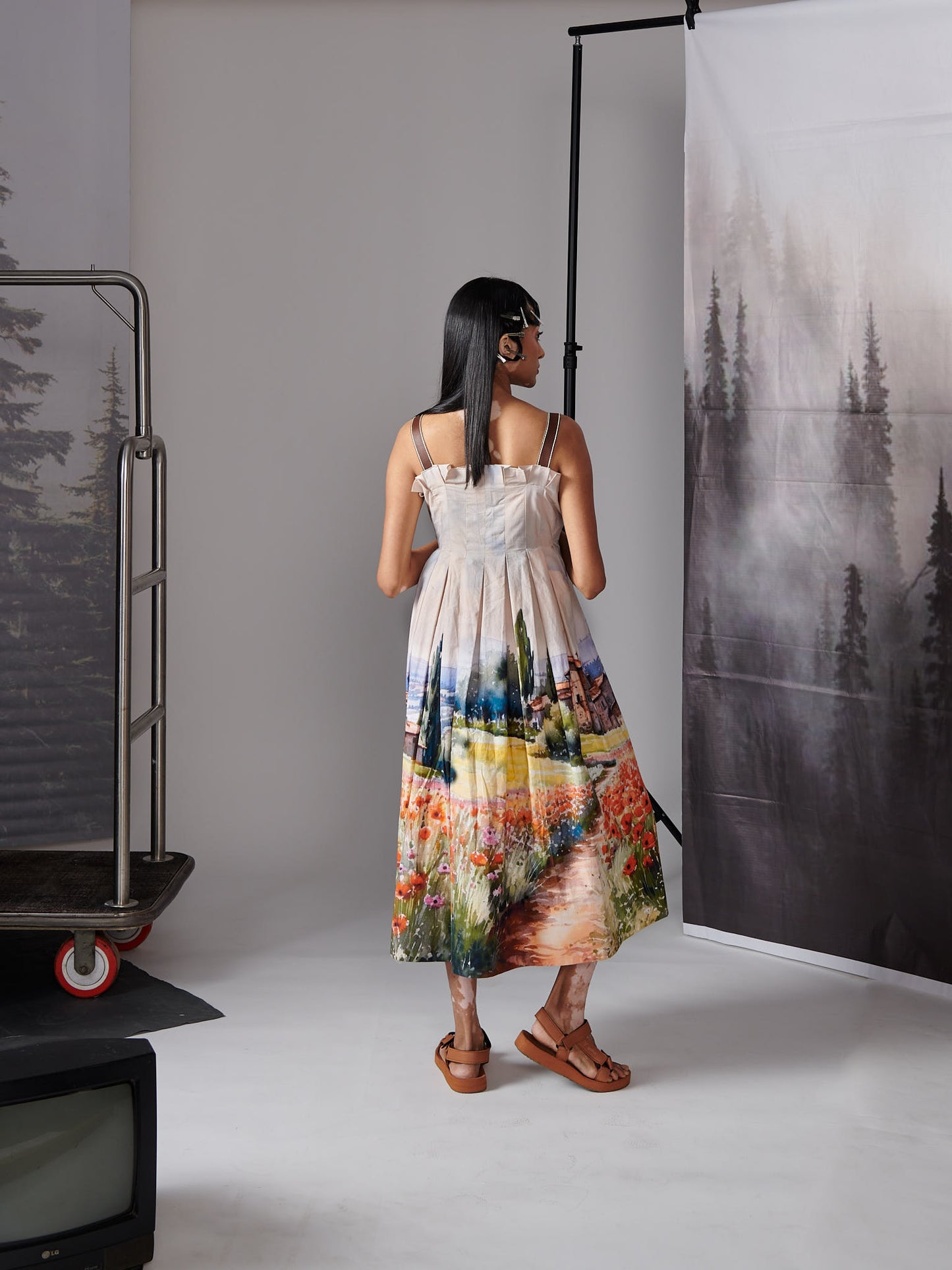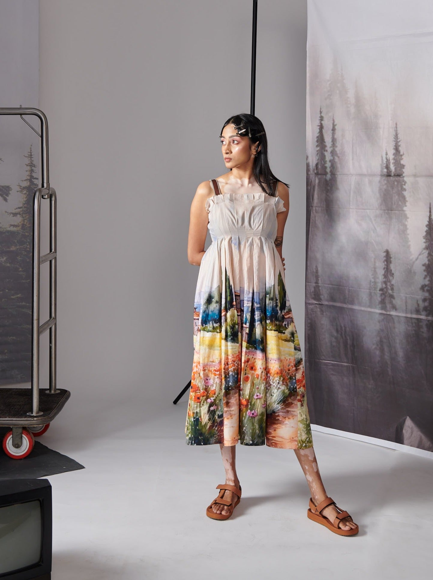 Valley Print Scenary Dress With Leather Straps (House) Dress